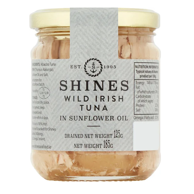 driven them to source and bring Irish Albacore tuna to the market. Shines use traditional catching methods, alongside classic preparation & preservation in glass jars and tins, to ensures maximum freshness, flavour and taste.
