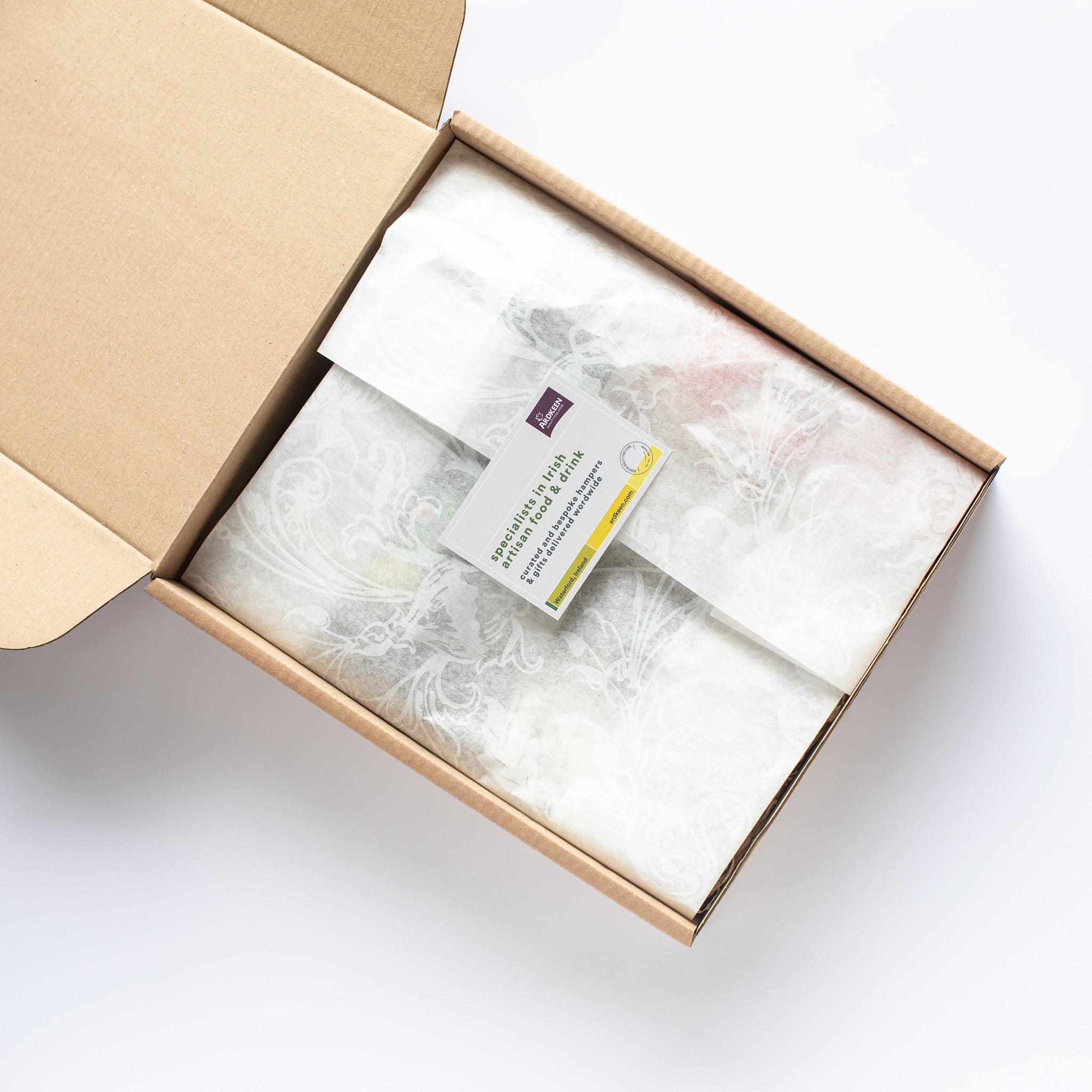 These contents are crafted by some of Ireland's finest small-scale food producers, ensuring authenticity, quality, and care in every bite. Thoughtfully presented in eco-friendly wrapping, our hampers embody sustainability and mindful gifting.
