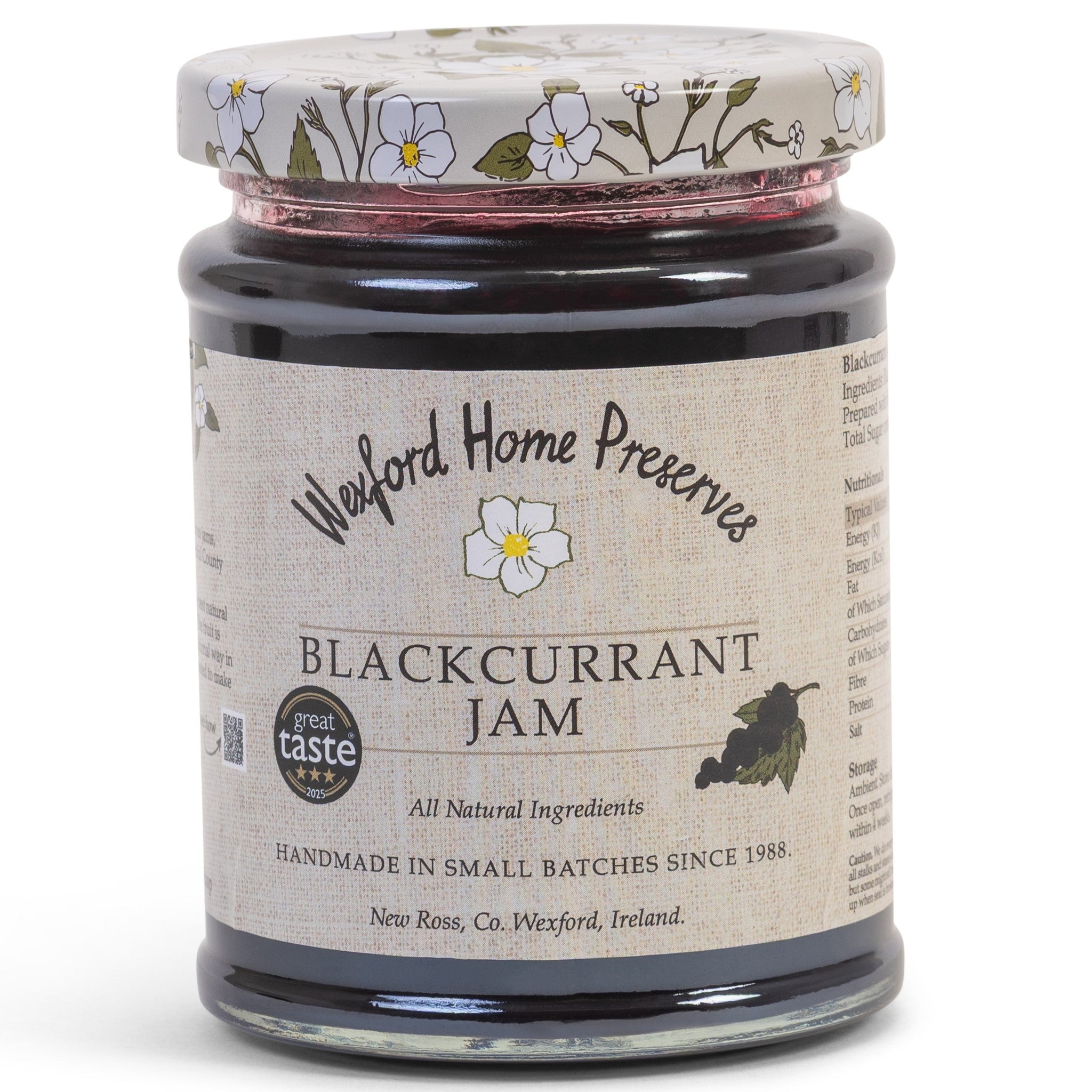 This blackcurrant jam is made by hand, like all of their products using the open pot boiling method in small batches with all natural ingredients. It is rich and juicy with a good tang of those beautiful, ripe blackcurrants.