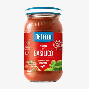 This is a simple, but extremely tasty sauce where the fresh flavour of Italian tomatoes blends with the unmistakeable fragrance of basil. The recipe is by the internationally acclaimed chef, Heinz Beck. De Cecco “Sugo al Basilico” is made only with Italian tomatoes, extra virgin olive oil and the finest ingredients which, when simmered slowly together, enhance the unique flavour of our recipe. De Cecco does not use preservatives or colouring agents to preserve all the authentic flavours of the primary ingredients used. It goes perfectly with any type of pasta shape especially De Cecco Spaghetti.