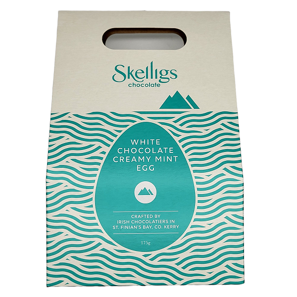 The perfect pairing of refreshing mint and creamy white chocolate to make a delicious thick shell egg. Experience the sweet tasting white chocolate mixed with the intensity and crispness of crushed mint leaves. The aroma of delicious waves of mint when opened is enough to encourage you to dive right in. Delicately handcrafted by Irish Chocolatiers to bring you the best treat this Easter.