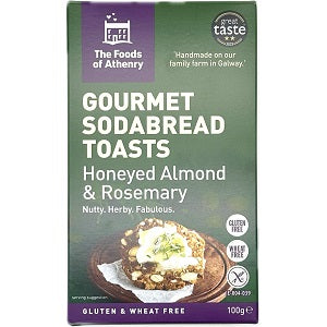 The herby one. Twice baked, crunchy almond & rosemary sodabread crackers. Nutty, herby & fabulous. For dipping and snacking. Great with hard cheeses.