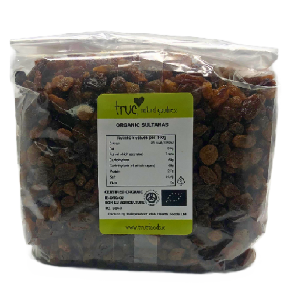 These organic sultanas are enriched with organic sunflower oil for an all-natural taste. Perfect for baking, trail mix, cereals.